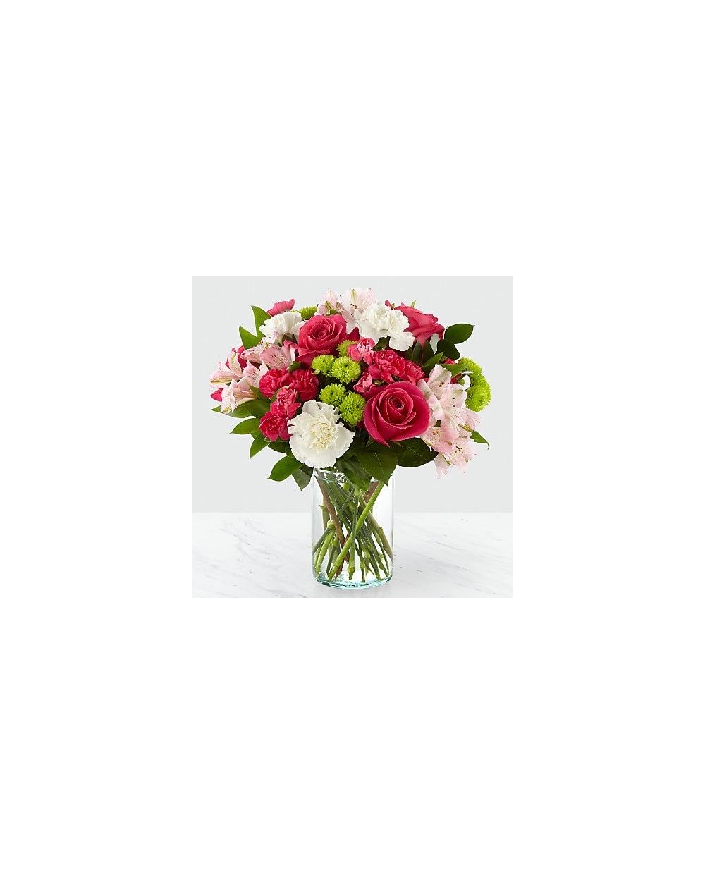 Bukiet kwiatów mieszanych: róże, astromerie, gożdziki, santini + zieleń dekoracyjna.